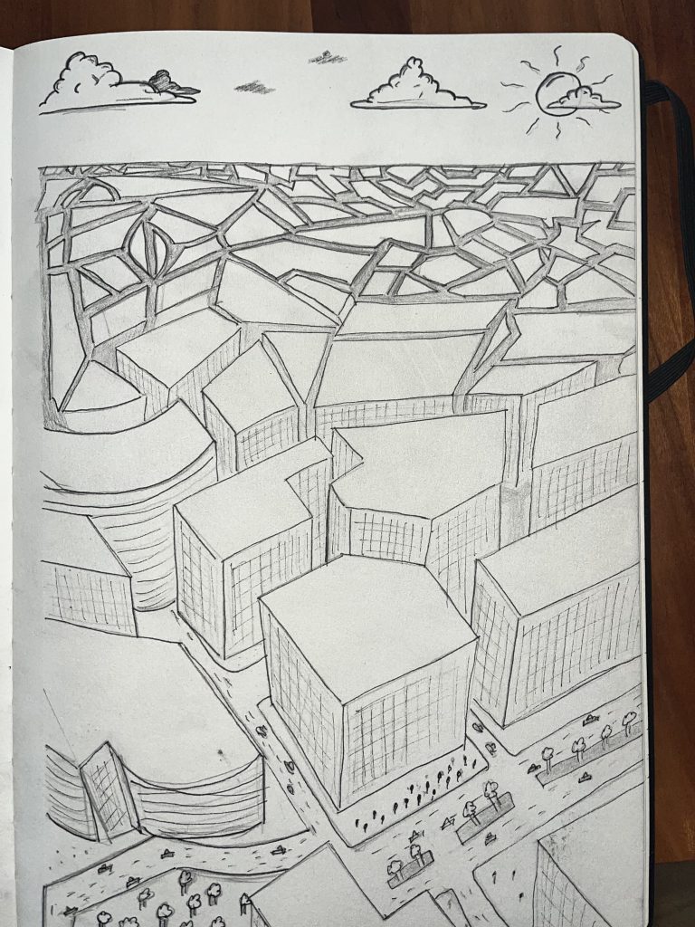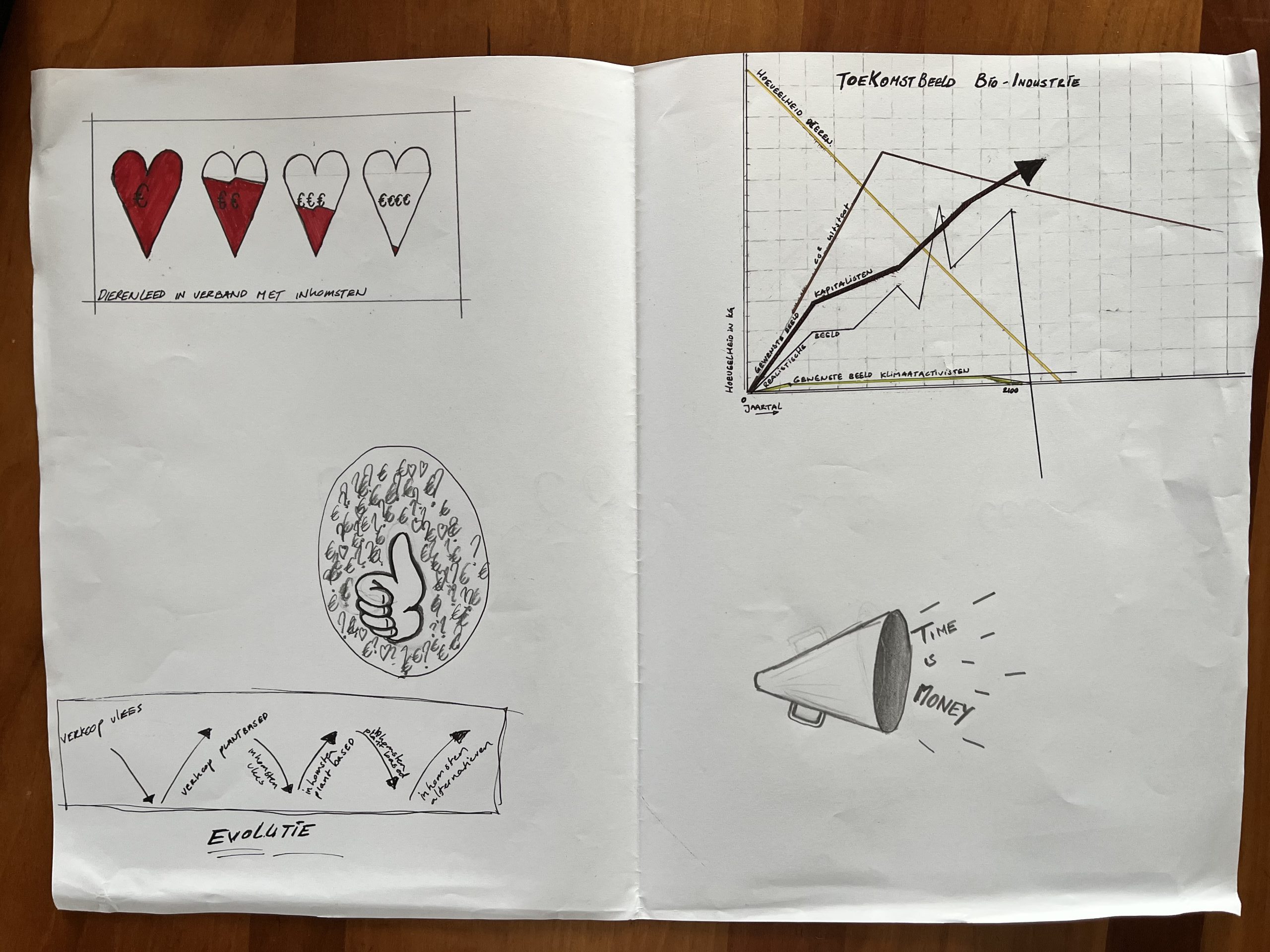 de schetsen zijn gebaseerd op het onderwerp, namelijk de toekomst van de bio-industrie