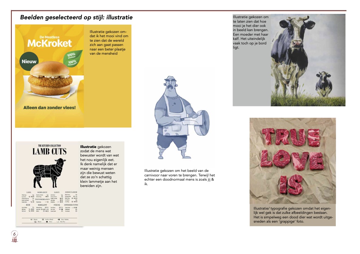 Nadat je die 50 beelden bij elkaar hebt gezocht, “filter je die beelden naar 10 andere beelden. 5 geselecteerd op illustratie en 5 geselecteerd op fotografie. Daarmee geef je jezelf een nog beter beeld hoe jij het het best kan aanpakken.